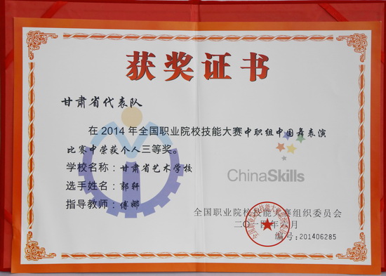 6月23日,“全国职业院校技能大赛中职组中国舞表演比赛”在天津举行,我校艺术中专部学生郭轩不畏强手,在比赛中出色发挥,以优异的表现在众多选手中脱颖而出,荣获个人三等奖,辅导教师傅娜也荣获优秀指导教师奖。