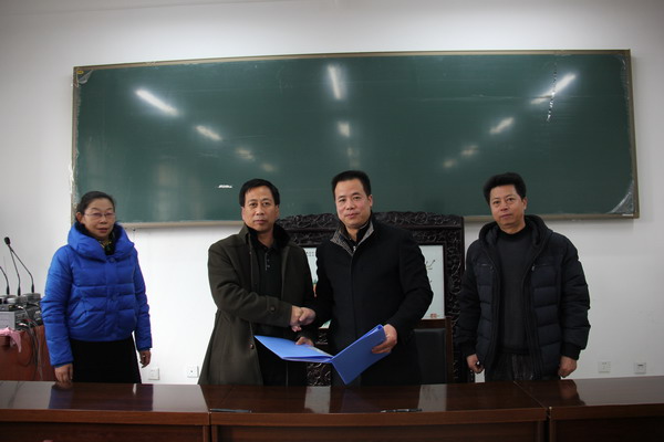 为了贯彻落实习近平总书记文艺工作座谈会重要讲话精神,加快甘肃文化大省、戏曲大省建设,面向国家“一路一带”战略和甘肃省文化发展重大需求,提升艺术中专部戏曲艺术人才培养过程课堂教学、教材完善、剧目开发三位一体的协同创新能力,促进戏曲艺术教育人才培养与学生舞台表演能力在剧目化、职业化和市场化全面转型,实现校企合作,走共同发展的道路,艺术中专部和镇原县艺隆演艺有限公司、定西市百花演艺有限公司本着服务地方文化,促进戏曲艺术人才培养技术进步,更好地利用艺术中专部和专业院团体在人才培养、科学研究和艺术创新资源等方面的优势,201412月5日(星期六),艺术中专部主任张世成与定西市百花演艺有限公司总经理李顺合、镇原县艺隆演艺有限公司总经理慕启隆本着“真诚合作,服务社会,互惠互利,共同发展”的原则,签订了“戏曲人才培养与舞台剧目同协创新”协议书。